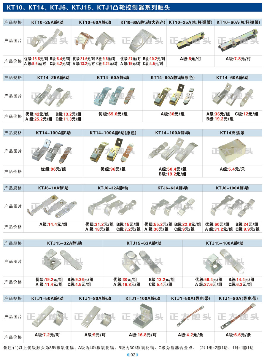 KT12、LK1、KTJ5、LK18、LK17、THQ1、TQKT凸輪控制器系列觸頭、CJT1交流接觸器觸頭