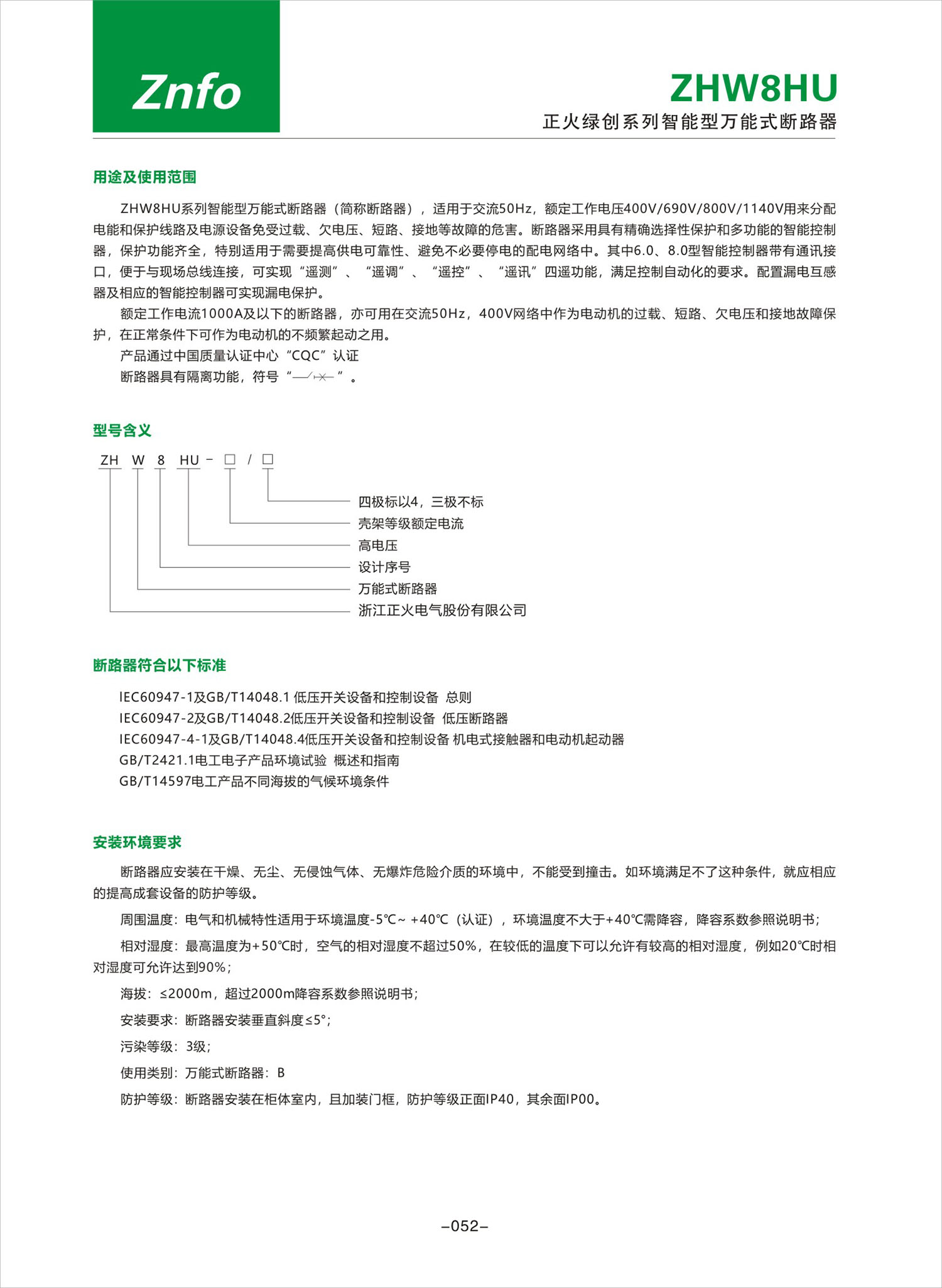 ZHW8HU系列智能型萬能式斷路器產(chǎn)品說明書
